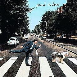 『ポール・イズ・ライブ』のジャケット写真は、ビートルズの名盤『アビイ・ロード』を明確に意識したセルフパロディとなっています。